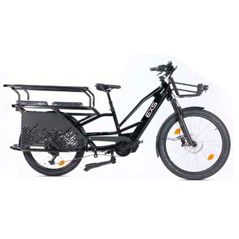 marque: Decathlon / Btwin modèle: Longtail R500E Cadre: Taille unique (1m55 - 1m96) Batterie: 672Wh (48V, 14Ah) Autonomie: 90km Nombre de vitesse: 8 (Microshift) pneus : CST C1996 pour vélo cargo.
